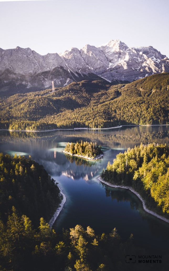 Also because of the easy access, the Eibsee is one of the most popular photo motifs in Germany. Accordingly, there is sometimes a lot of activity here. The lake has crystal clear mountain water, wonderful romantic islands, and the massive northern flank of the Zugspitze contrasts in the background.