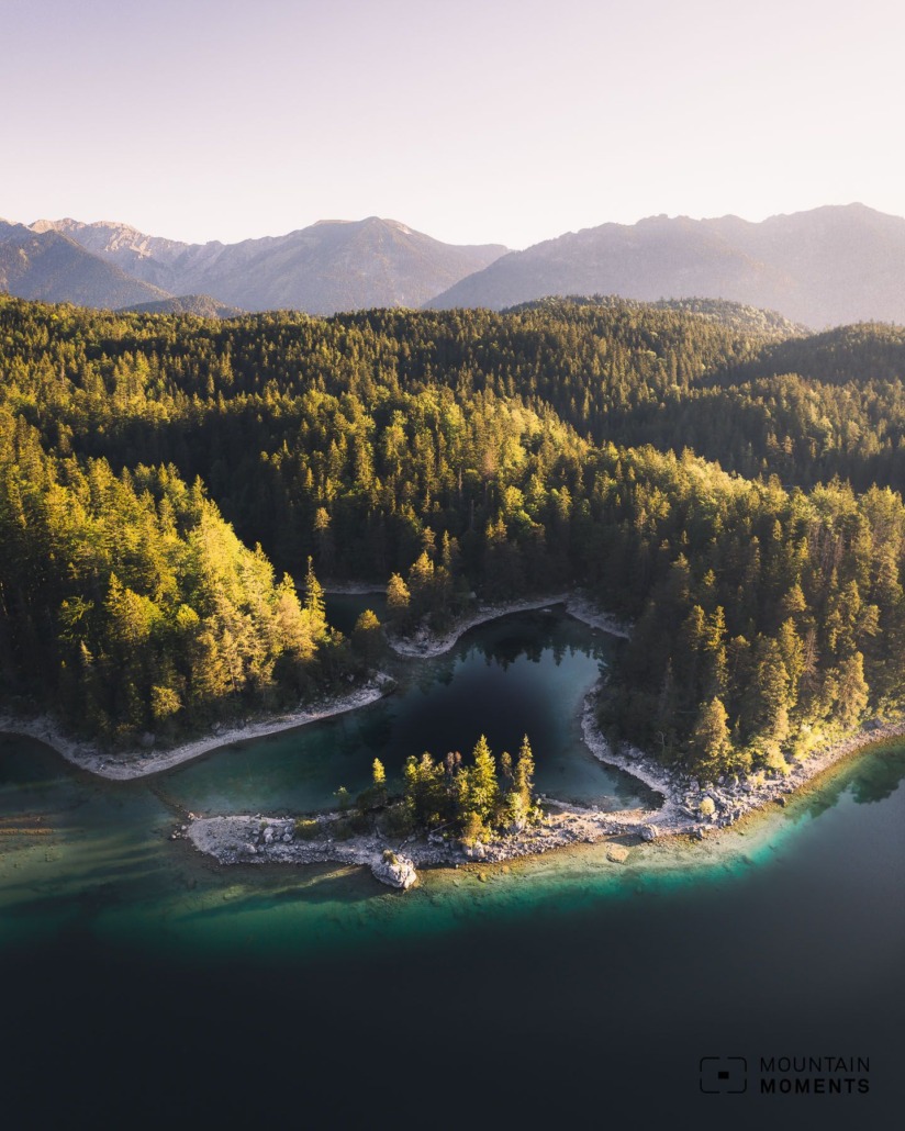 Crystal clear and emerald green, the Eibsee shimmers in front of the majestic backdrop of the Zugspitze. The scattered small rocky islands look like they belong on a page of a fairytale, and they invite you to daydream.