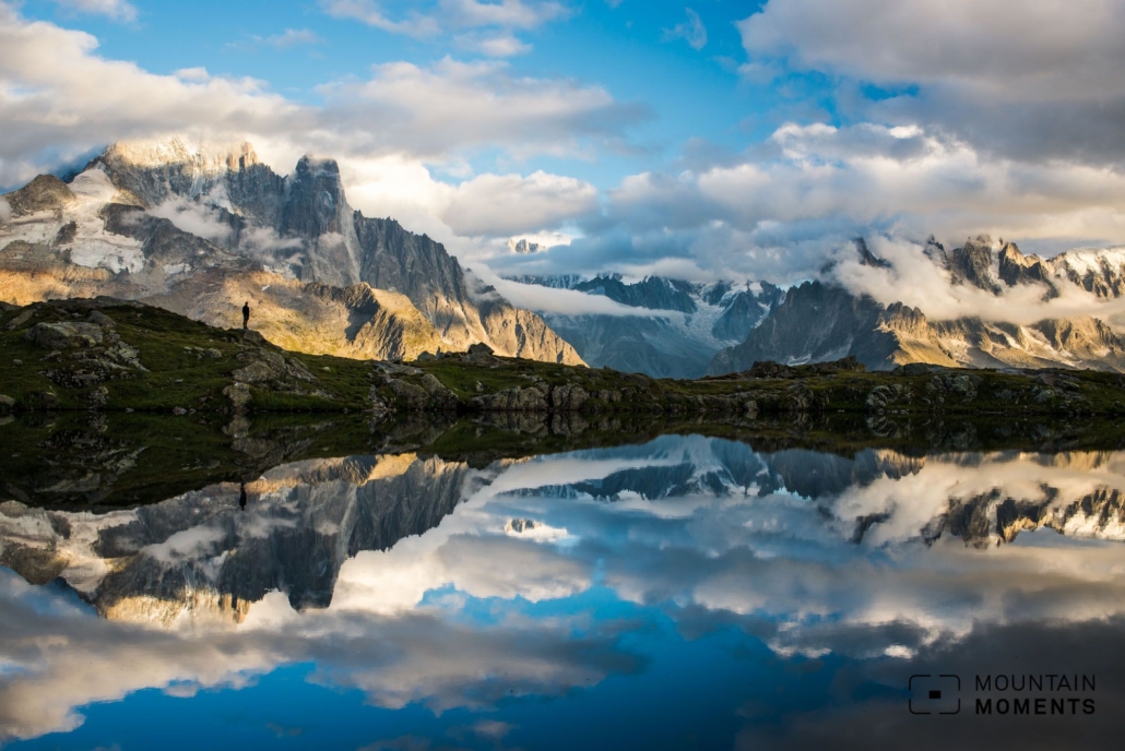 Lying there between Lac Blanc – the White Lake – and the smaller Lacs de Chéserys is undisputedly the most beautiful view of the entire Mont Blanc massif.