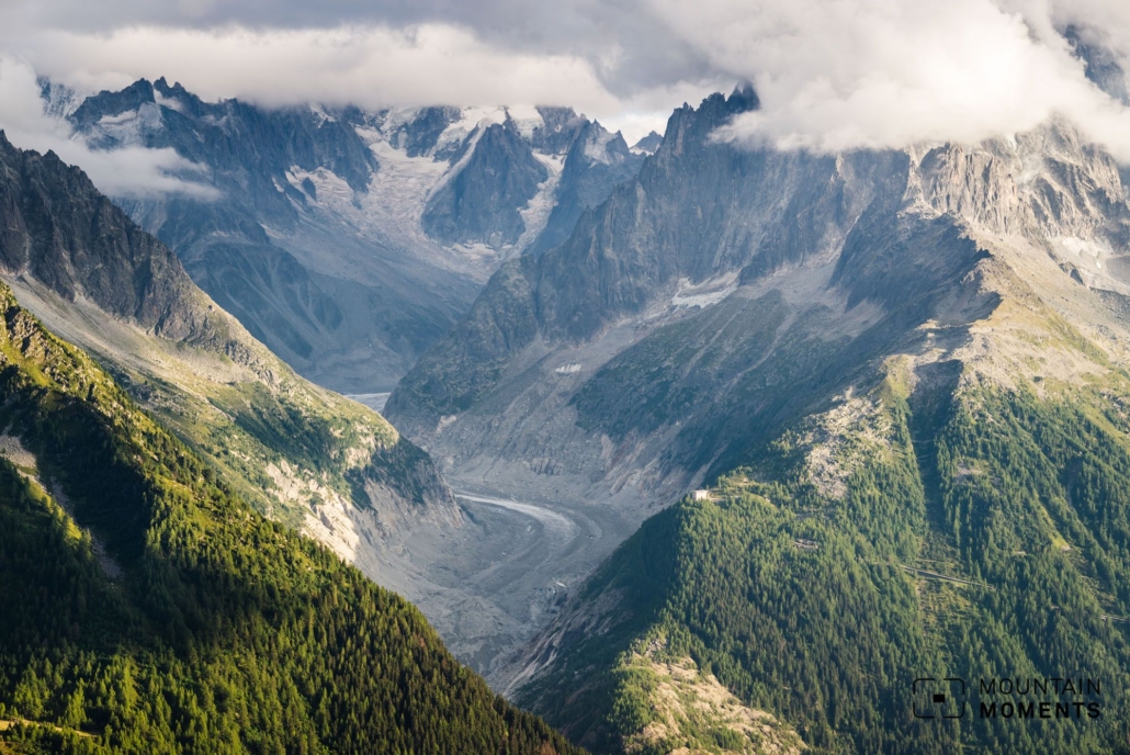 From the station of the Mer de Glace we have a great view into the wide glacier basin. The Chalet du Glacier des Bossons is a pleasantly relaxed photo alternative, a stone’s throw from the Bossons Glacier.