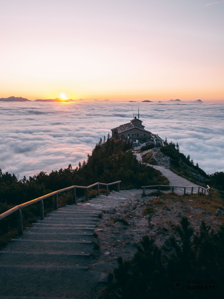 We have the best photographic view from the Kehlstein summit. Here the ridge with the Kehlsteinhaus acts as a visual element.
