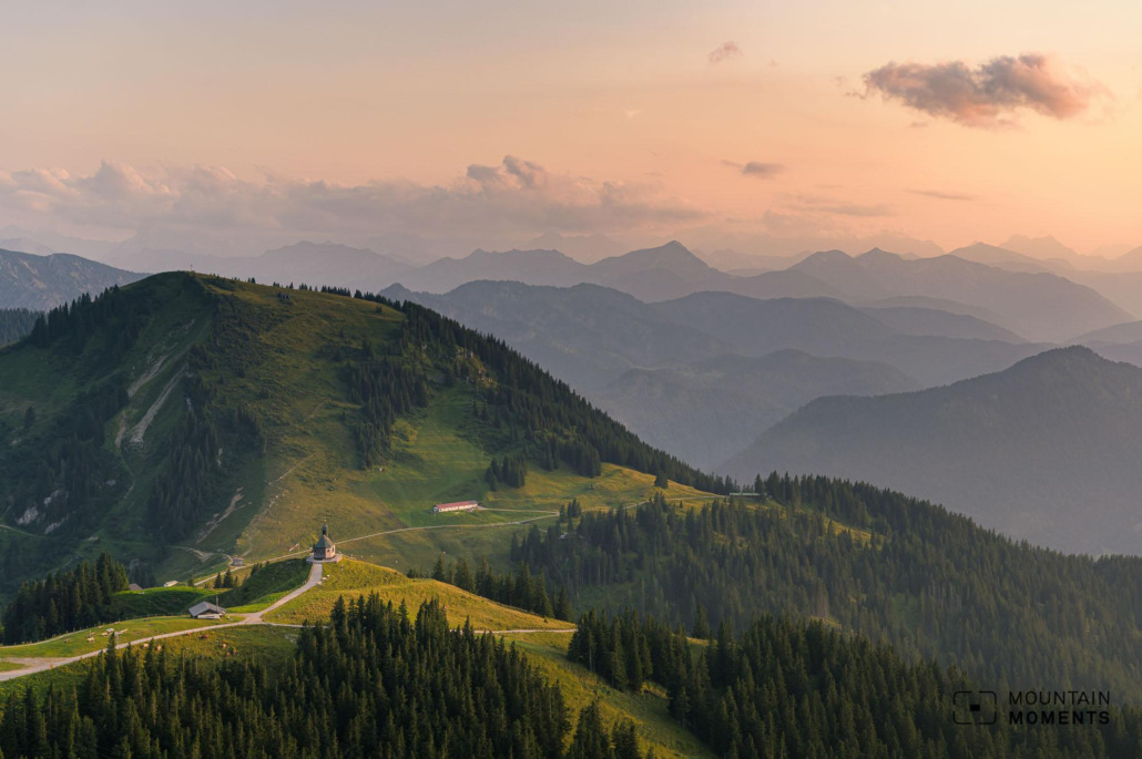 The most striking motif is the Wallberg chapel in an atmospheric Alpine foothills setting. At sunset, it stands in the sun for a long time on the summit and is particularly atmospheric.